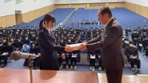 2月27日に行われた令和7年度(8年卒)同窓会入会式の様子。