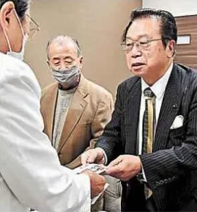 贈呈式を同市医師会館で行い、沖津会長は「継続は力。今後も続けたい」と語った。緑光会は新型コロナウイルスへ対応する医療関係者に寄付しており、佐野会長は「コロナ禍ではマスクを購入し、会員に配布する費用に充てて非常に助かった。寄付は大変ありがたい」と述べた。
