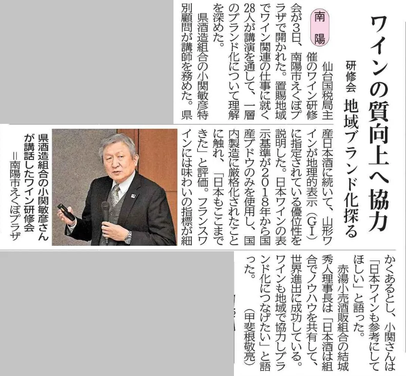 赤湯小売酒販組合の結城秀人理事長は「日本酒は組合でノウハウを共有して、世界進出に成功している。ワインも地域で協力してブランド化につなげたい」と語った。